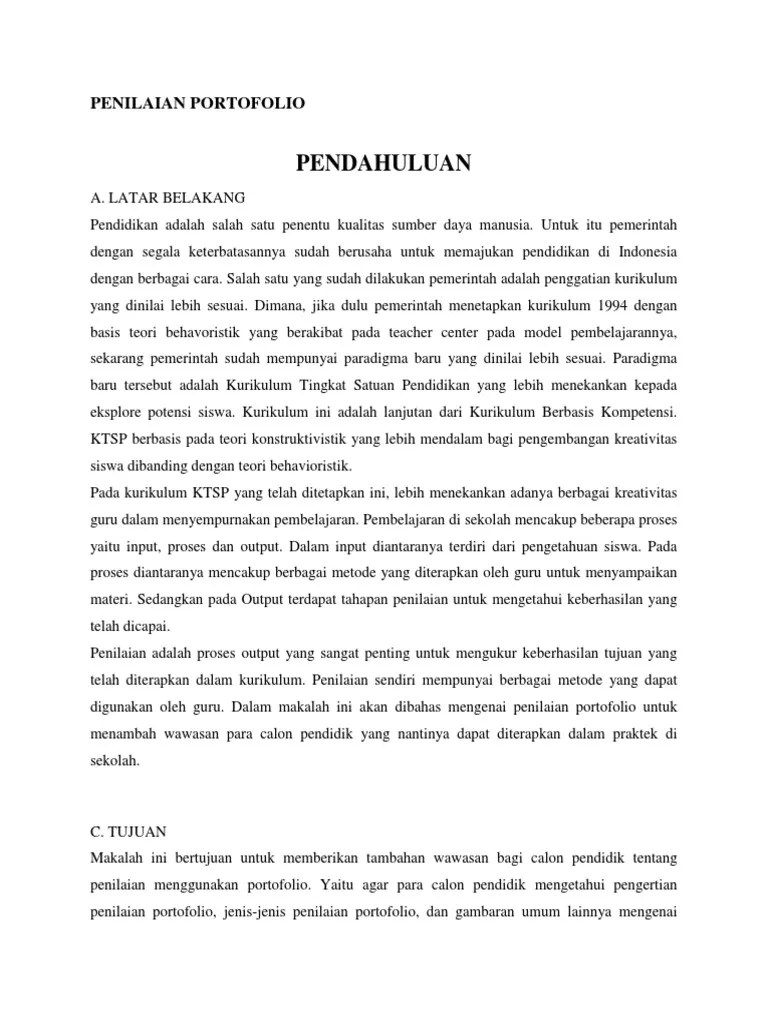 12) cerita tentang kesenangan atau ketidaksenangan siswa terhadap mata pelajaran yang bersangkutan. Adanya past experience review atau review terhadap. Oleh karena itu, di samping penggunaan instrument jenis lain, penggunaan portofolio cocok untuk menilai pencapaian atau perkembangan siswa . Uraian materi penilaian portofolio merupakan . Asesmen yang sedang berkembang saat ini adalah penilaian portofolio yang disinyalir memiliki banyak manfaat baik bagi guru maupun bagi siswa.